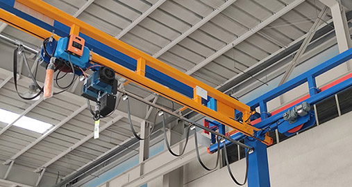 ● 可沿墻上或其他支承結(jié)構(gòu)上的高架軌道運行的懸臂起重機。● 壁行吊使用場合為跨度較大、建筑高度較大的車間或倉庫,靠近墻壁附近處吊運作業(yè)較頻繁時較適合。